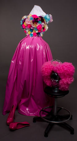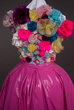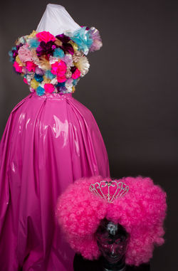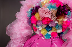The concept for my designs for Iolanthe by Gilbert and Sullivan stemmed from my interest in drag and drag culture and how the power on stage would shift if the gender roles were swapped. Each character was designed with their own colour scheme - whilst the Fairy Queen's is predominantly pink, the flowers on her bodice represent a comglomeration of all of her Fairy cohort.The undergarments consist of a corset with padded fake breasts, alongside a tutu like underskirt which altogether gives my male model a feminine silhouette.